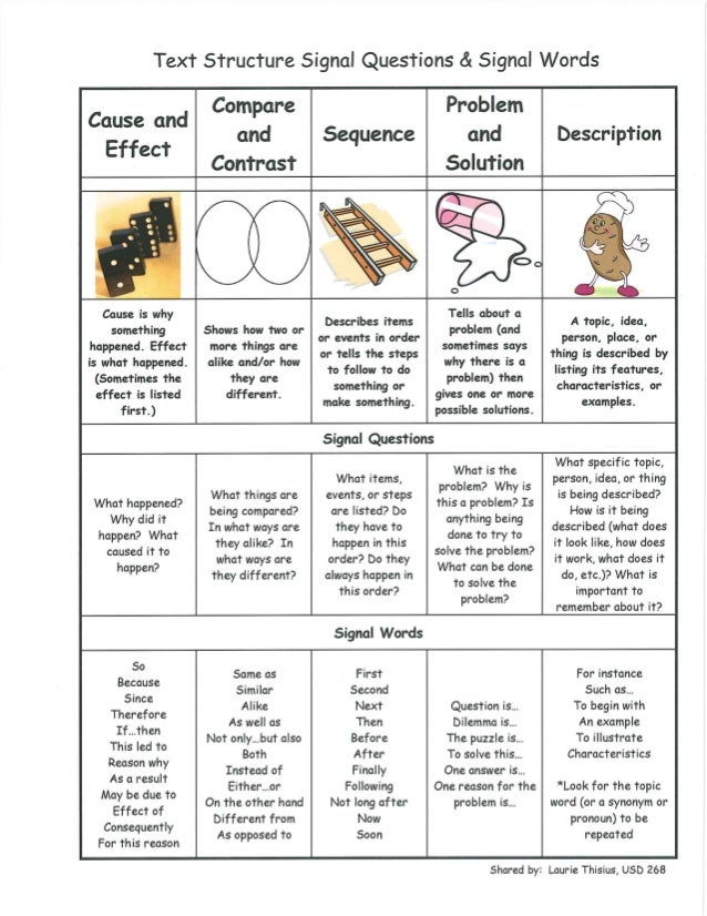 Text Structures With Signal Questions And Signal Words | School
